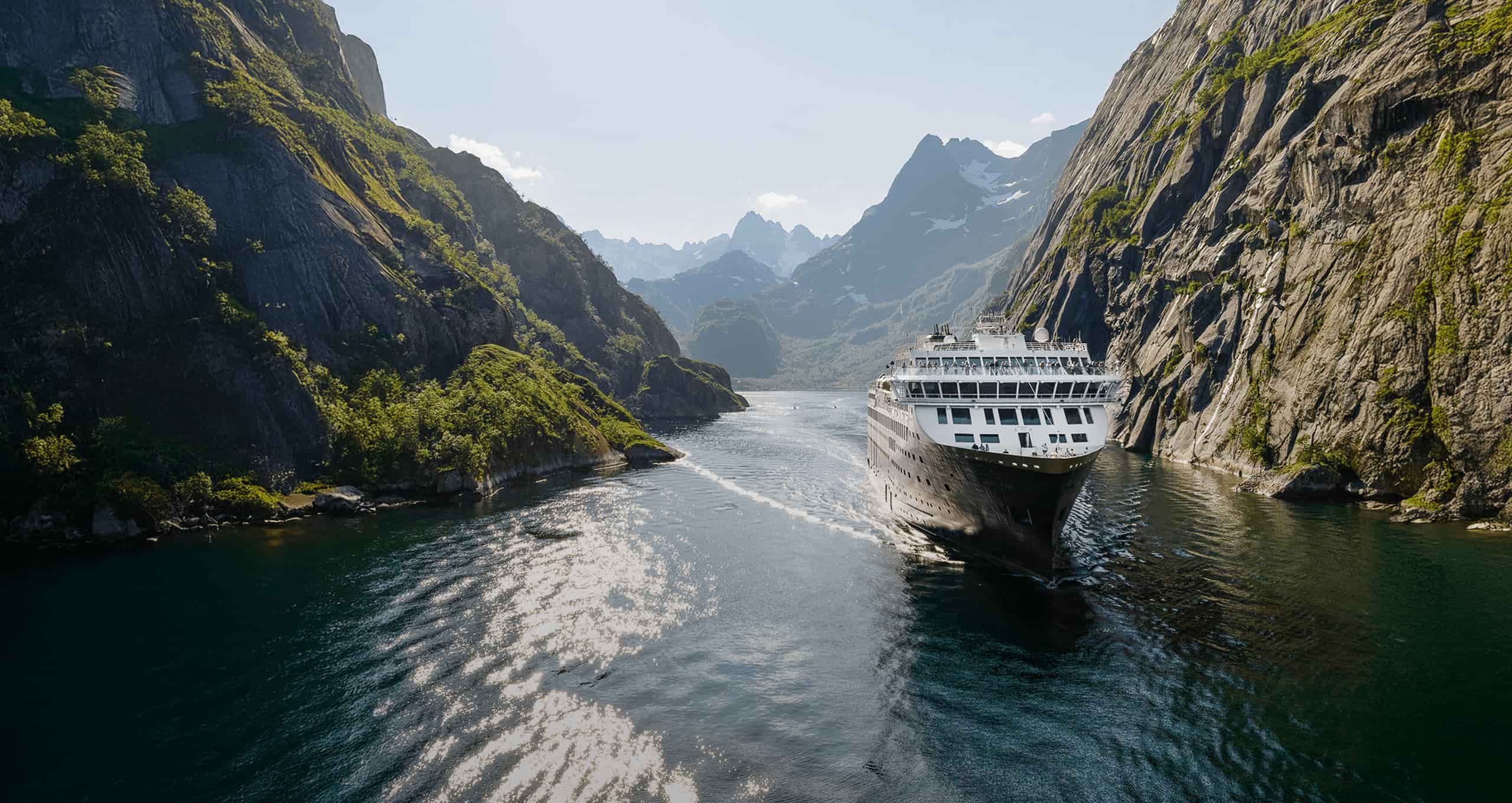 La rotta prosegue tra le spettacolari isole Lofoten, il Trollfjord e il passaggio del Circolo Polare Artico, tra montagne scolpite dal vento e villaggi di pescatori. Trondheim, Ålesund e la costa dell’Helgeland raccontano la Norvegia più autentica, fino all’arrivo a Bergen, antica città anseatica e suggestivo punto finale di questa grande crociera costiera.