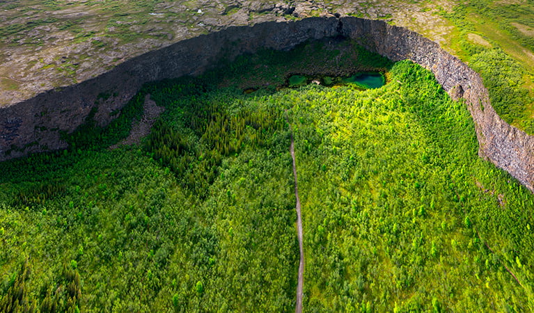 Partenza per Egilsstadir e possibile sosta con bagno rilassante a Vok Bath con probabile vista di renne che brucano intorno alle vasche galleggianti (quote su richiesta). Deviazione al suggestivo canyon di Studlagil con le sue migliaia colonne di basalto. Attraversando l’altopiano di Mödrudalsöraefi si raggiunge il lago Myvatn con deviazioni consigliate per la cascata Dettifoss, il vulcano Krafla, la grotta di Grjotaja, le solfatare di Namaskard e gli pseudocrateri di Skutustadir.